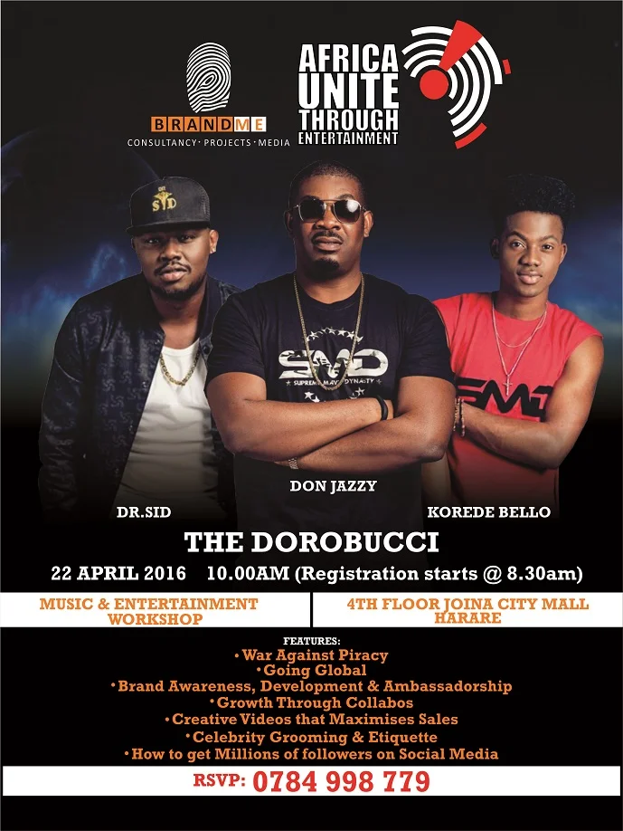 Good news for artists, producers and those in the music industry, Nigerian super-producer & artist Don Jazzy and some of the artists on the Mavins stable, Korede Bello and Dr. Sid are on their way to Zimbabwe this week for the Africa unite Through Entertainment Workshop. This should be a boost for the industry, as Don Jazzy and crew will share inside information on the keys to their success in music.